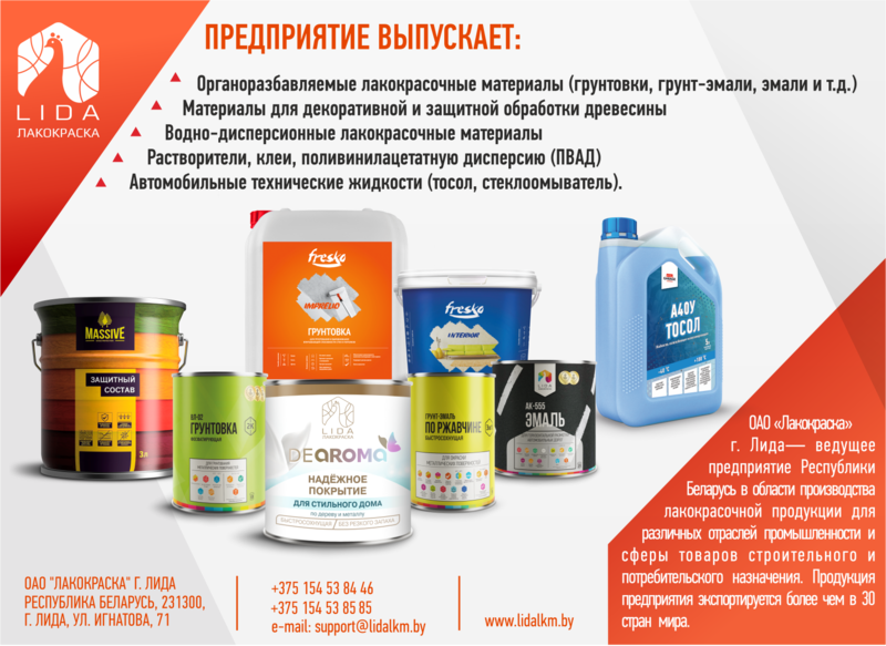 ОАО «Лакокраска» г. Лида – крупный производитель различных лакокрасочных материалов для промышленности и розничной торговли в Республики Беларусь.